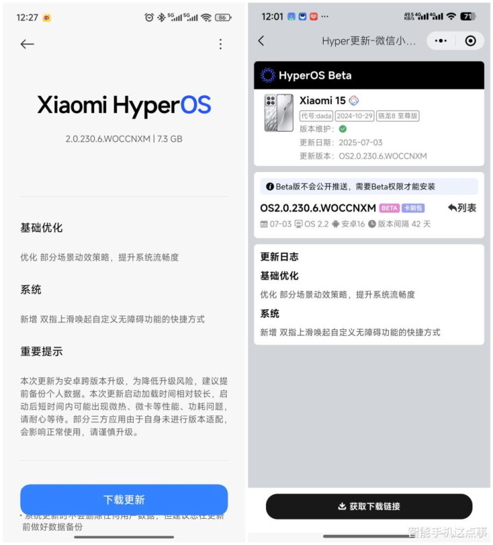 不过需要注意,此次更新因其涉及安卓底层的大版本跨越,小米官方在更新详情中着重强调了潜在风险与必要的准备工作。